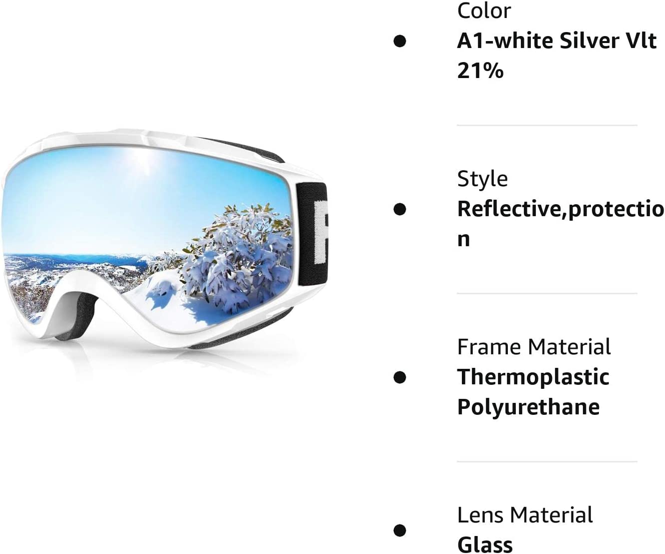 [Helmet compatibility and adjustment strap] The silicone back is non-slip, and the high-density 3D jacquard extra-long strap is widened. Premium Material - Comfortable, warm, safe and breathable material. High-quality TPU frame, triple-layer foam. These ski snowboard goggles are suitable for children (boys and girls) over 10 years old.