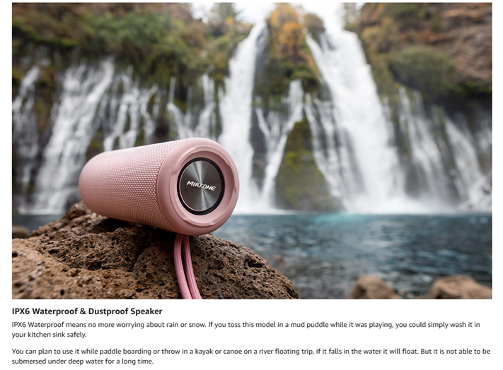 MIATONE Outdoor Portable Bluetooth Speakers Wireless Speaker Waterproof - Pink