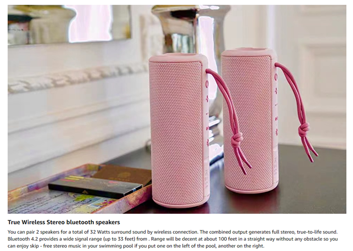 • [TWS Function] You can pair 2 bluetooth speakers for a total of 32 Watts surround sound. The combined output generates full stereo, true-to-life sound.
