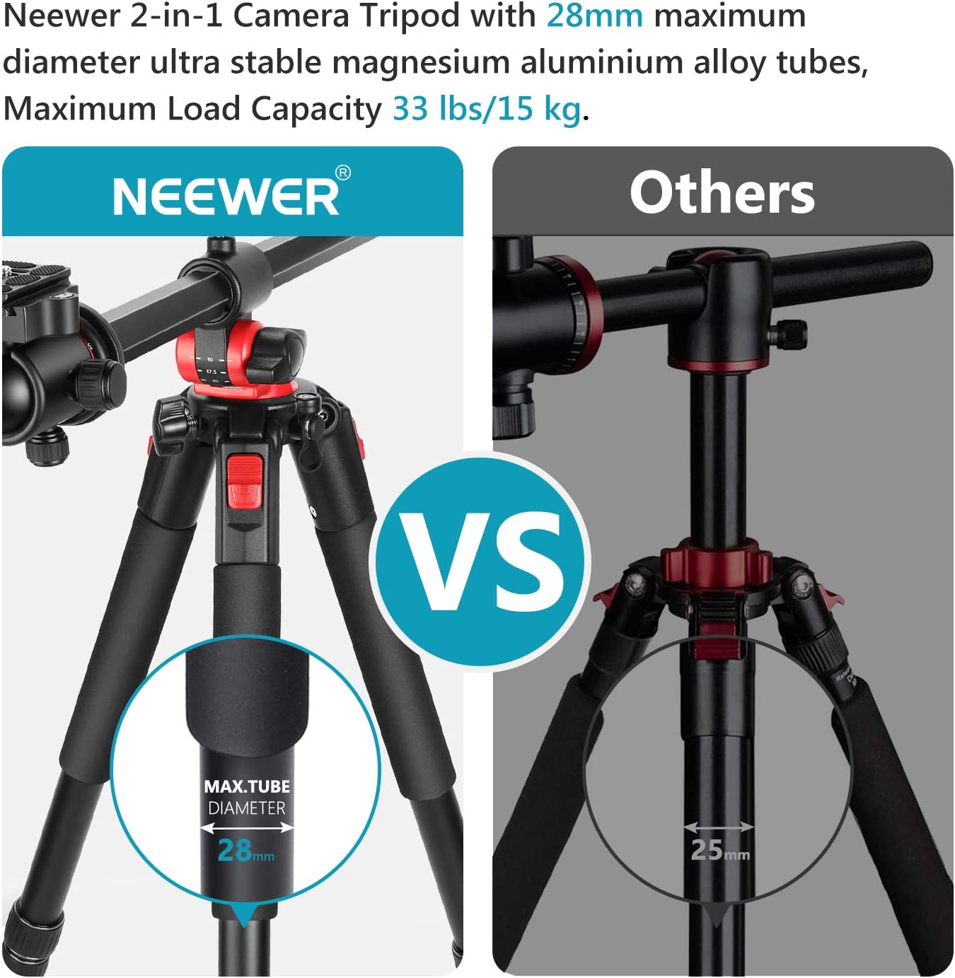 NEEWER 72 inch Camera Tripod Monopod with Center Column and Ball Head Aluminum, Arca Type QR Plate, Bag, Horizontal Tripod Overhead Camera Mount for DSLR Camera, Video Camcorder, Max Load: 33lb