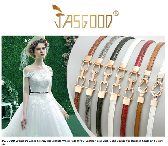 JASGOOD Leather Skinny Women Belt Thin Waist Belts for Dresses up to 37 Inches with Golden Buckle 2 Pack