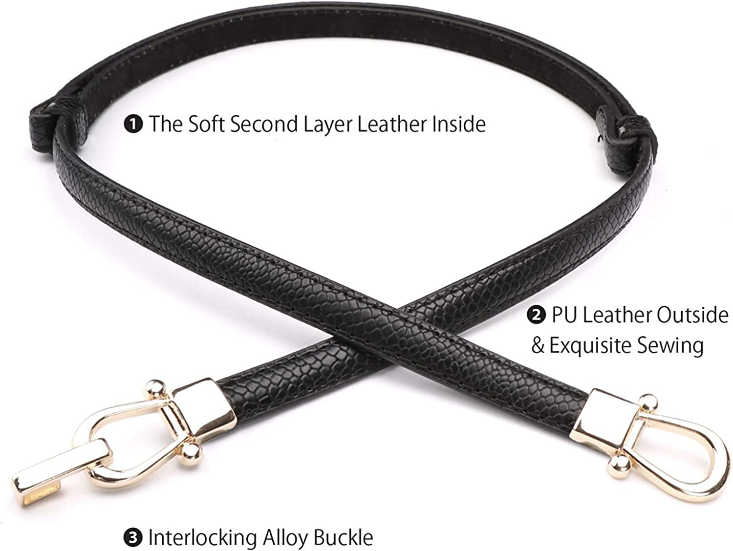 • ▶MATERIAL & COMFORT--- This 2 pack women thin belt is made of high quality cowhide leather and raw leather inside,extremely soft and comfortable to wear.
