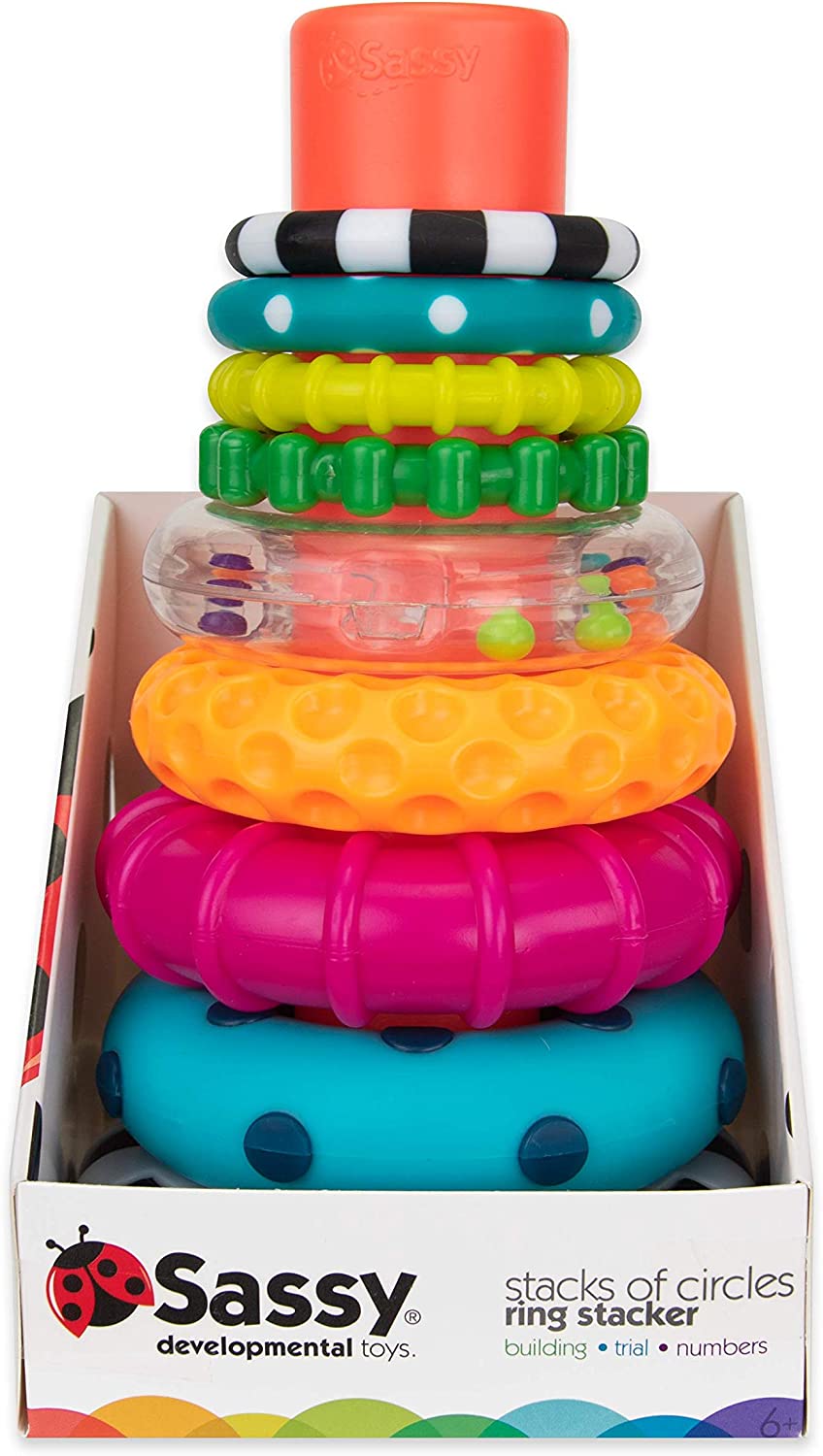 Sassy Stacks of Circles Stacking Ring STEM Learning Toy, Age 6+ Months, Multi, 9 Piece Set