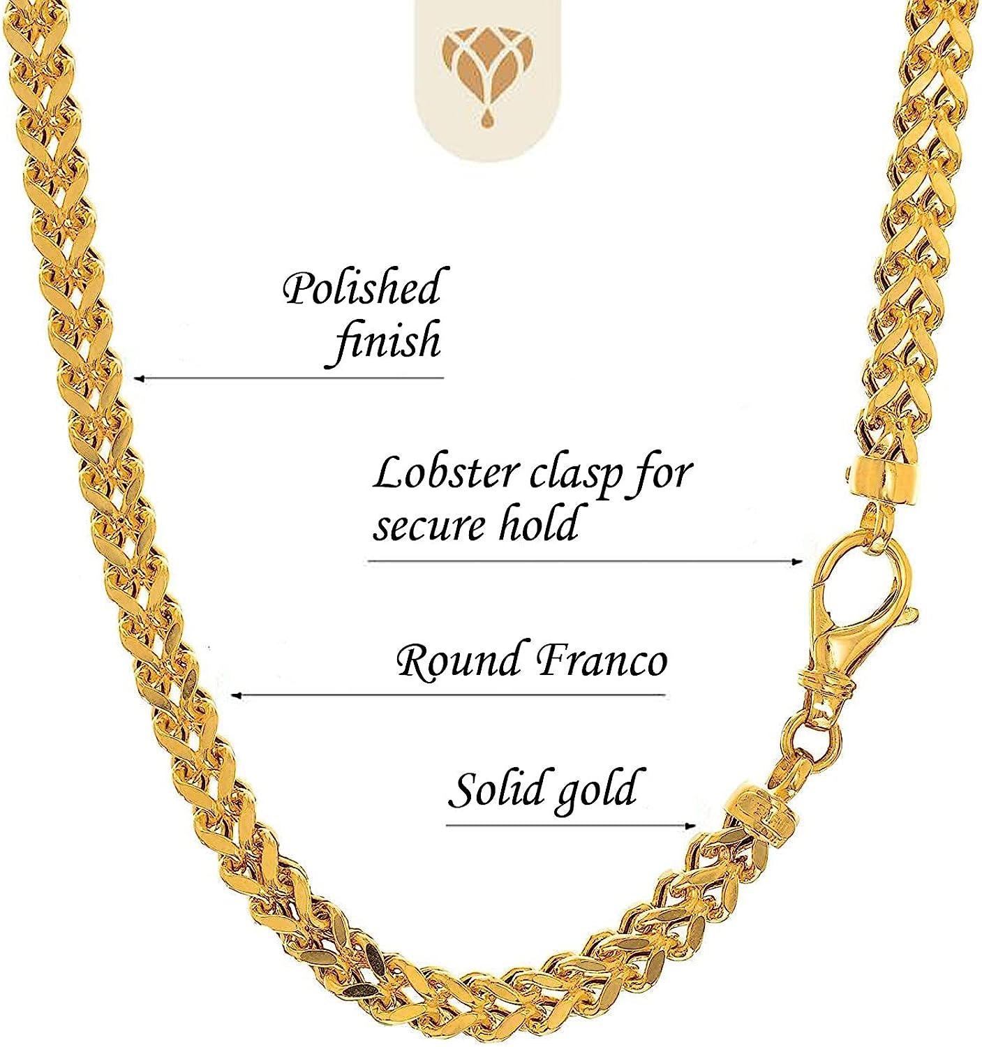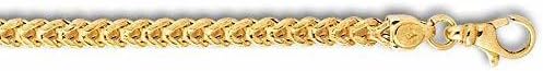14k REAL Yellow Gold 6.4mm Shiny Diamond-Cut Square Franco Chain Necklace Or Bracelet for Pendants and Charms with Lobster-Claw Clasp (9", 24" or 26 inch) Mens Solid Franco Chains Jewelry