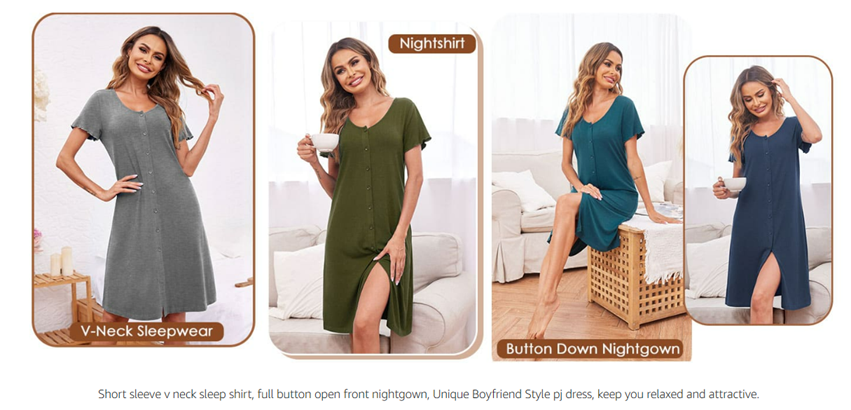 Short sleeve & knee length pajama dress, feeling much freedom while you are walking.It is a great choice to wear this night shirt while watching TV with your family or your friend.