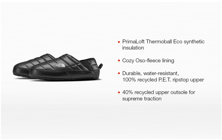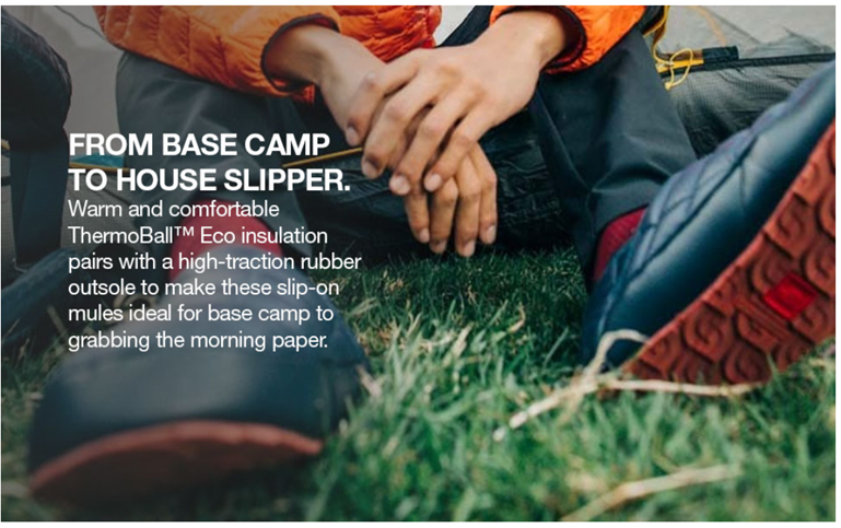 • FORM MEETS FUNCTION. The Men's ThermoBall Traction Mule V shoe combines ThermoBall Eco insulation with a high-traction rubber outsole to make a slip-on that's ideal for base camp, après ski or shuffling out to grab the morning paper.