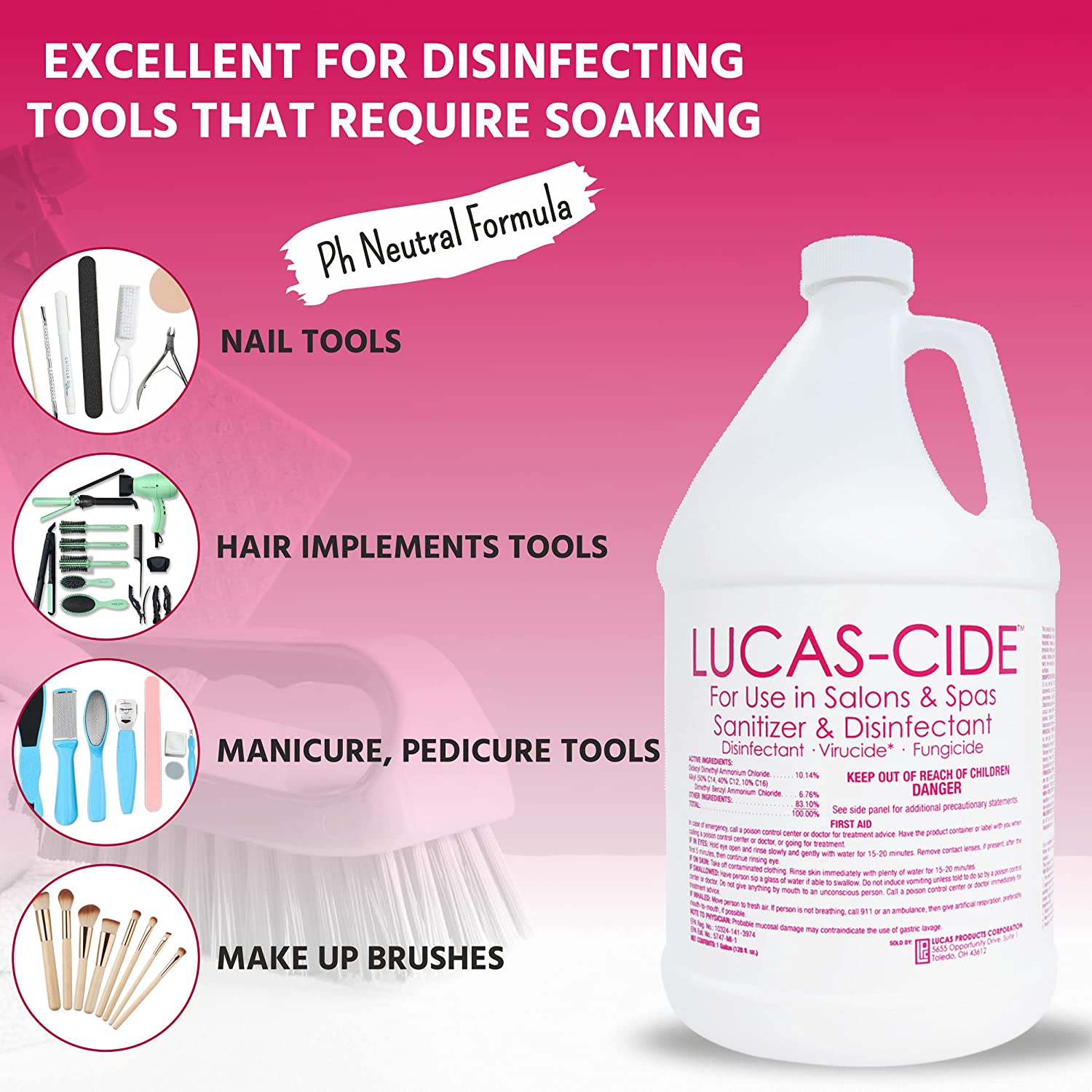 LUCAS-CIDE Salon and Spa Disinfectant Multipurpose Surface Sanitizer, Hospital Grade, EPA Disinfectant Cleaning Supplies Solution 1 Gallon - Pink