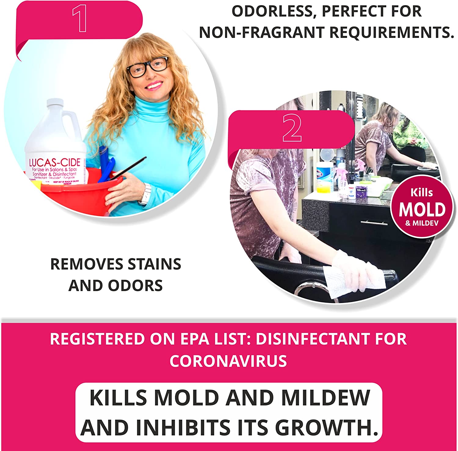 • ECO-FRIENDLY & ODORLESS: The iconic pink liquid is trusted and effective earning its reputation for creating a safe and clean salon. LUCAS-CIDE concentrate has no added dyes, VOC’s or fragrances. It is economical for use in every salon, barbershop and spa!