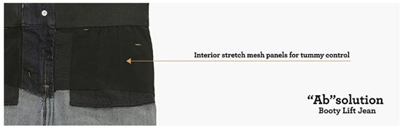 - Democracy’s signature “Ab”solution jean uses innovative construction that incorporates super-stretch denim, slimming panels, a hidden inner elastic waistband, mesh panels, signature curved back yoke, and strategically placed pockets