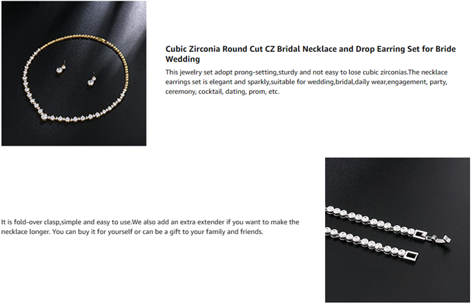 Material:white gold plated copper + clear cubic zirconias.And the metal surface is smooth,sparkly and beautiful