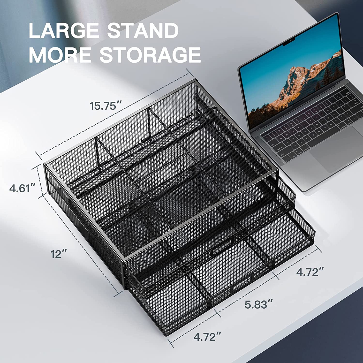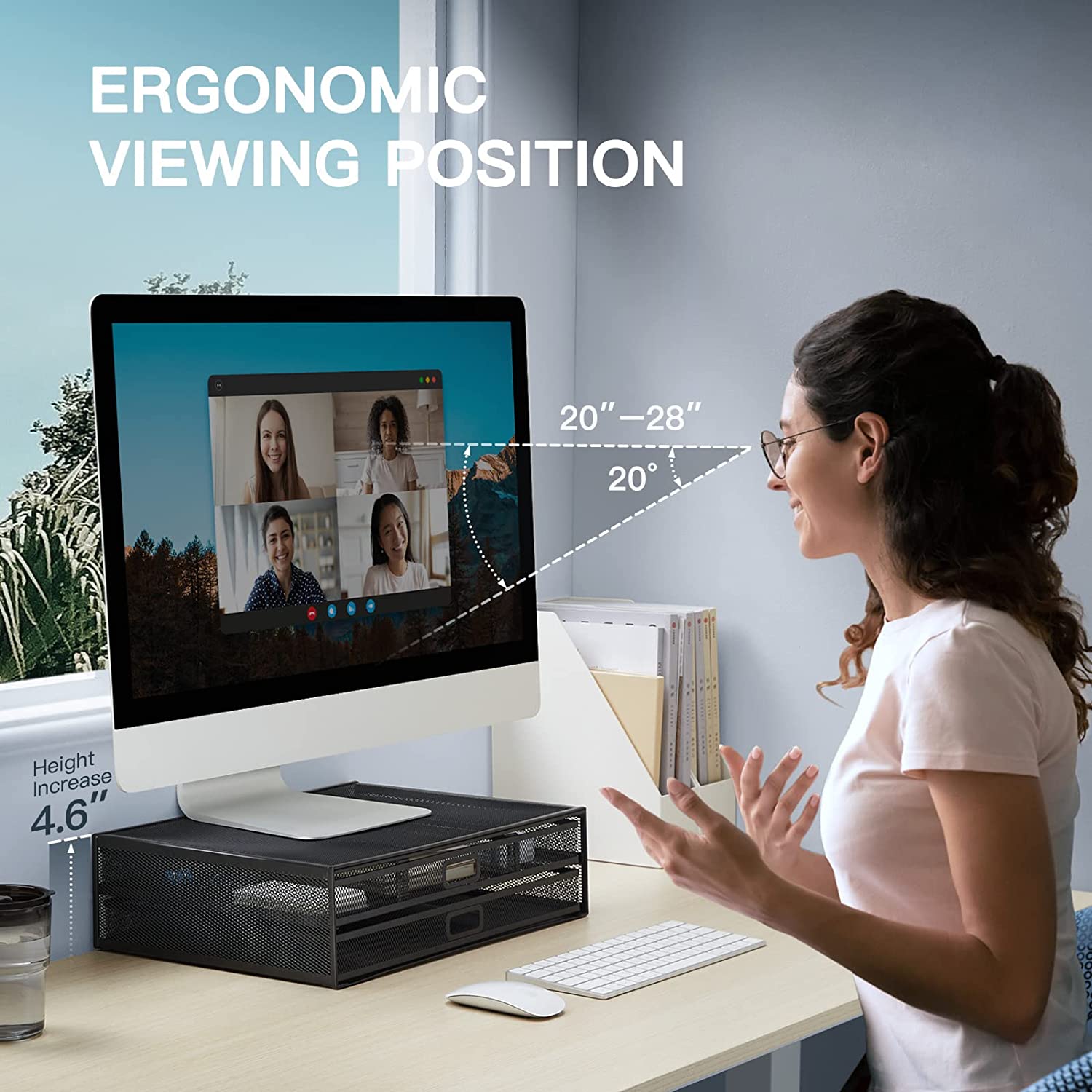 Monitor Stand with Drawer, Monitor Stand, Monitor Riser Mesh Metal, Desk Organizer, Monitor Stand with Storage, Desktop Computer Stand for PC, Laptop, Printer - HUANUO