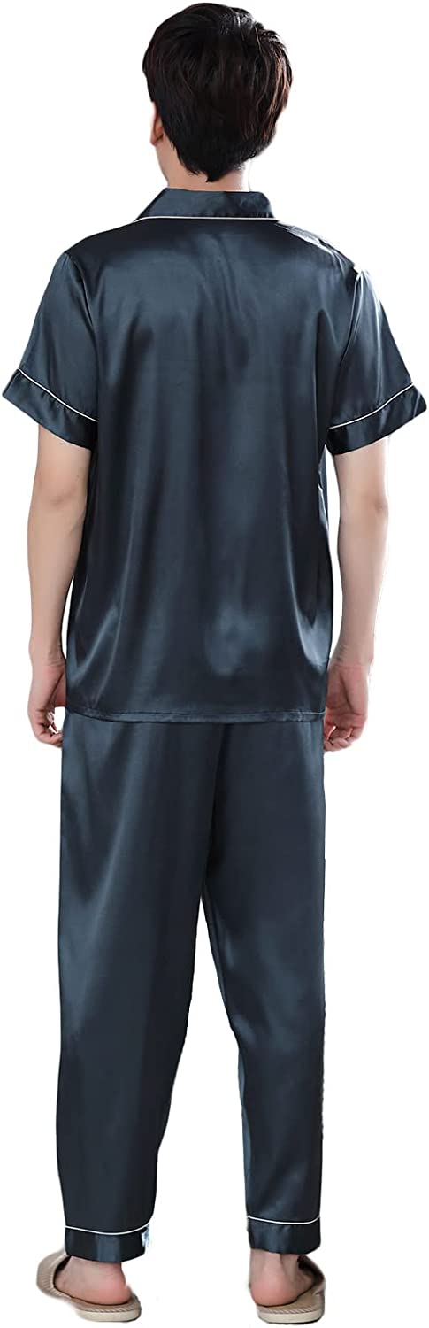 Gift:The satin pj set is a perfect gift choice for your dad, husband, son, or friend on birthday,Christmas Day,New Year,Valentine's Day. Fit for SleepWear,pajama party,fathers day,indoor, living room, bedroom, hotel, vocation, travel, and daily sleepwear.