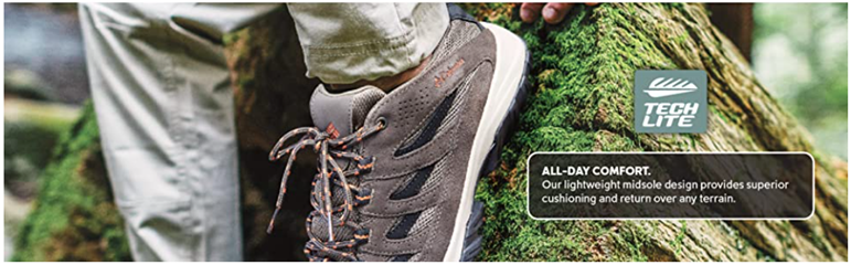 Take these lightweight leather hikers on the toughest ventures you can think of. They'll conquer mile after mile thanks to their durable construction, Techlite cushioned midsole, and a super-grippy outsole that steadies every step. This trail-born shoe features a suede leather upper combined with a comfortable and breathable mesh webbing structure. The Omni-Grip traction rubber outsole is non-marking, great for indoor wear without worry, while providing a sure-footed traction over a wide variety of terrain in the wild. This is your new go-to outdoor shoe. Columbia offers these men's hiking shoes in multiple colors, with true-to-size fit.