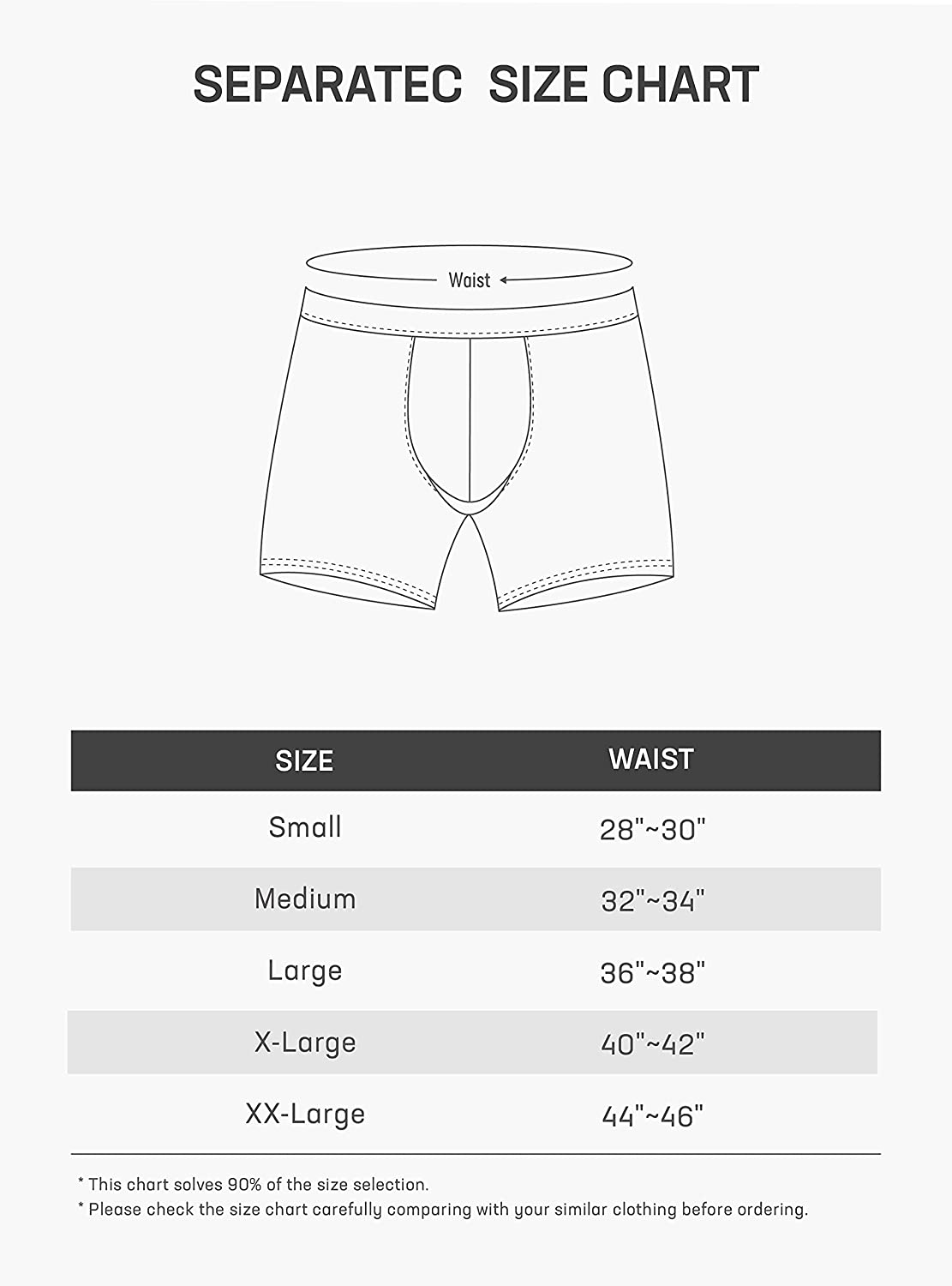 • Innovative Separate Pouches Tech: 2 pouch underwear keep man's intimate areas comfortably separated without annoying squeeze.Front pouch sustains a fresh environment and lower pouch provides support and air movement.