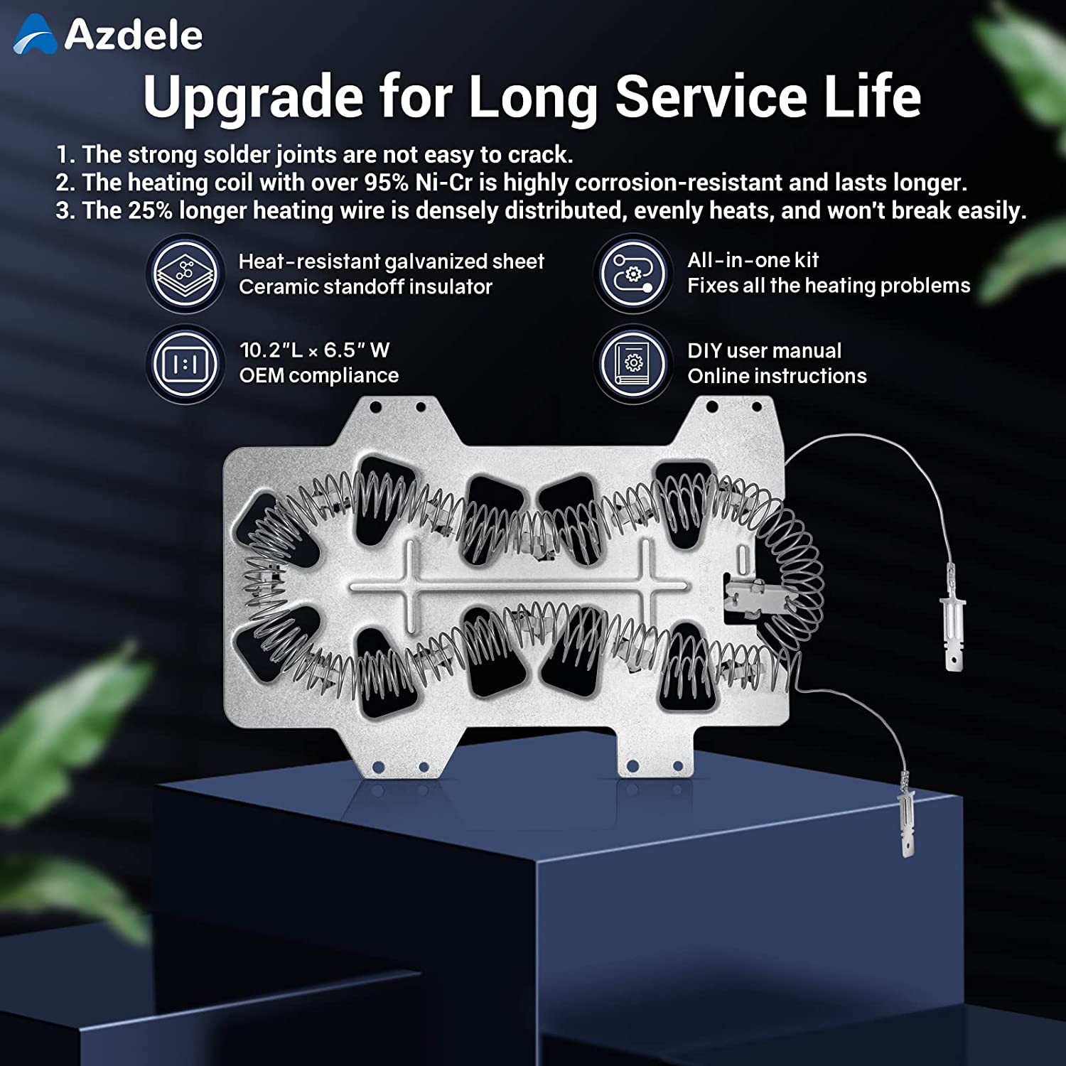 - Compatible Dryer Models: Azdele Samsung dryer heating element fits for dv42h5000ew/a3,dv45h7000ew/a2 dv48h7400ew/a2,dv42h5200ep/a3,dv40j3000ew/a2,dv42h5200ew/a3,dve50m7450w/a3,dv448aep/xaa,dv5451aew/xaa,dv42h5000es,dv331aer/xaa,dv5471aep/xaa,dv56h9000ep/a2,dv448aew/xaa,dv331aew/xaa,dv419aew/xaa,dv50f9a6evw/a2,dv50f9a7evp/a2,dv361ewbewr/a3,dv393etpawr/a1,dv407aew/xaa,dv45h7000ep/a3, etc. It's also suitable for brands like LG, Maytag, Sears, Kenmore, Kitchen-Aid and Roper.
