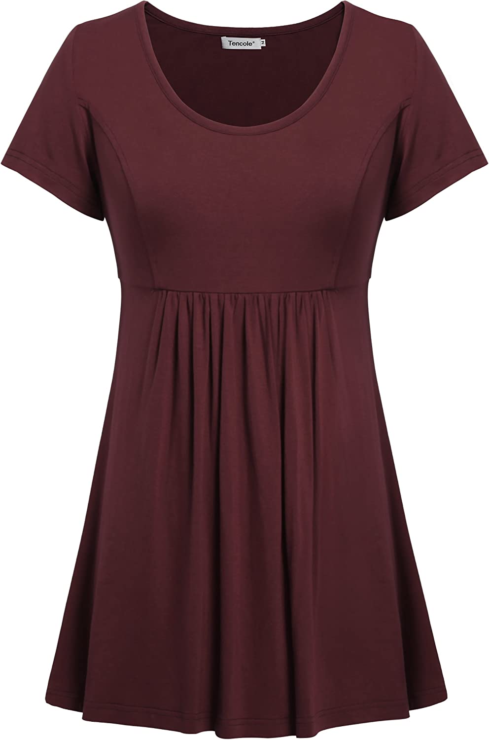 Tencole Womens Short Sleeve Summer Tunic Tops for Leggings Loose Fit Hide Belly Shirts Empire Waist Casual Tops