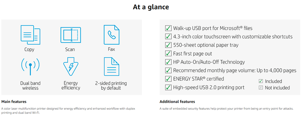 • ENHANCED ENERGY EFFICIENCY – Designed with the environment in mind, the HP Color LaserJet Pro MFP M479fdw saves up to 18% energy over prior products, with technologies that help reduce paper waste