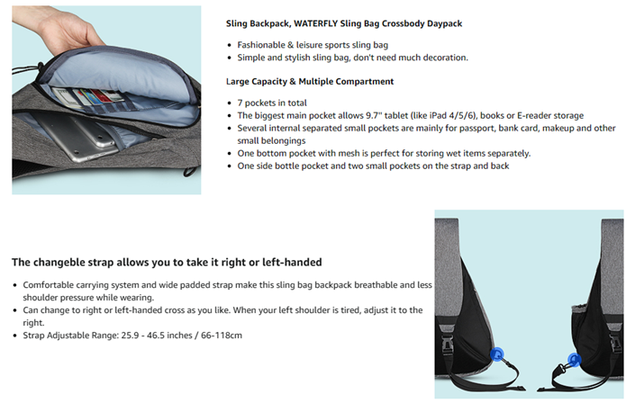 CHANGEABLE & ADJUSTABLE SHOULDER STRAP: It can flexible switch around right or left-handed , the adjustable strap range is around 25.9 - 46.5 inches / 66-118cm. Can be worn as a sling bag, chest bag, shoulder bag, crossbody bag