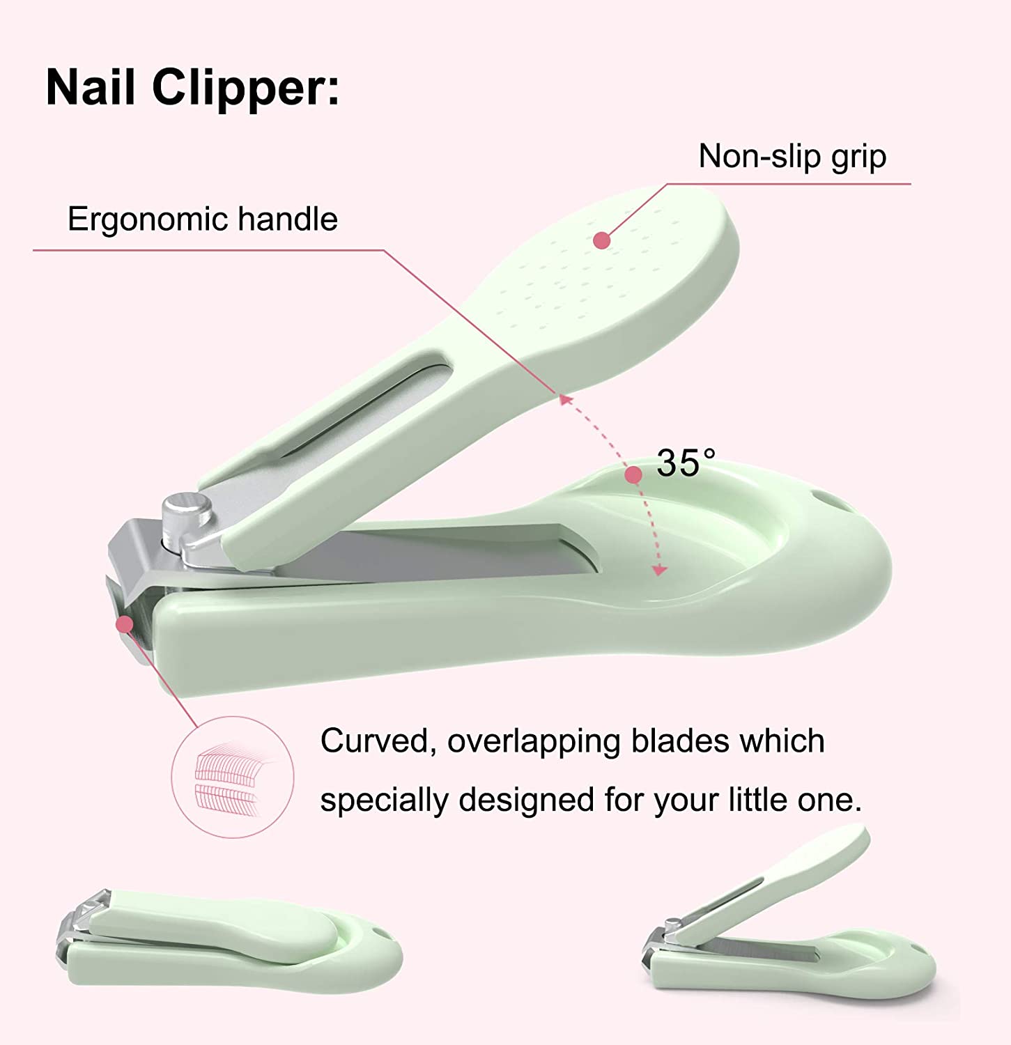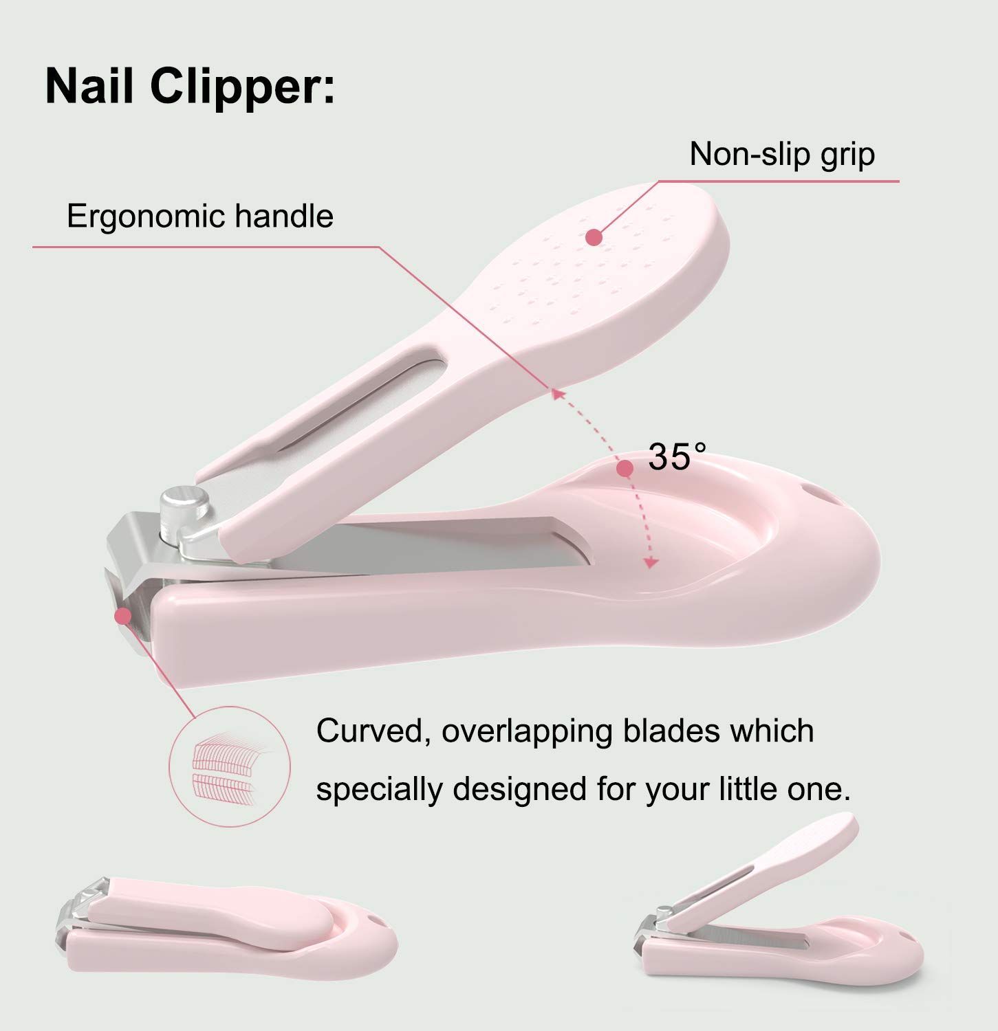 SPECIFICALLY DESIGNED FOR KIDS: Baby Nail Clippers: Ergonomic handle, curved, overlapping blades, non-slip handle. Baby Nail Scissors: Large hole handle, non-slip grip, circular head design. Baby Nail File: Delicate, smooth, rounded, perfect size for the small fingers and toes of babies toddlers. Infant Tweezers: Anti-slip handle with bumps, easy to grip, rounded tip design, useful for cleaning like picking the nail scraps, clean infant’s ear or bellybutton.