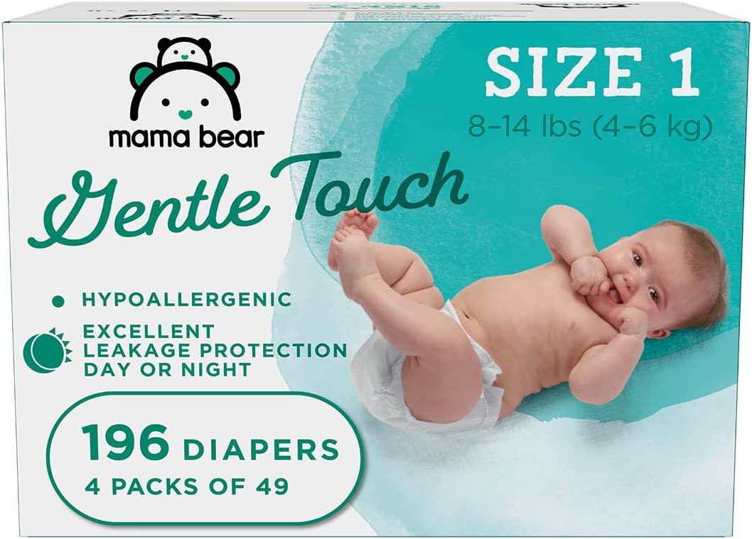 Amazon Brand - Mama Bear Gentle Touch Diapers, Hypoallergenic, Size 1, 196 Count (4 packs of 49)