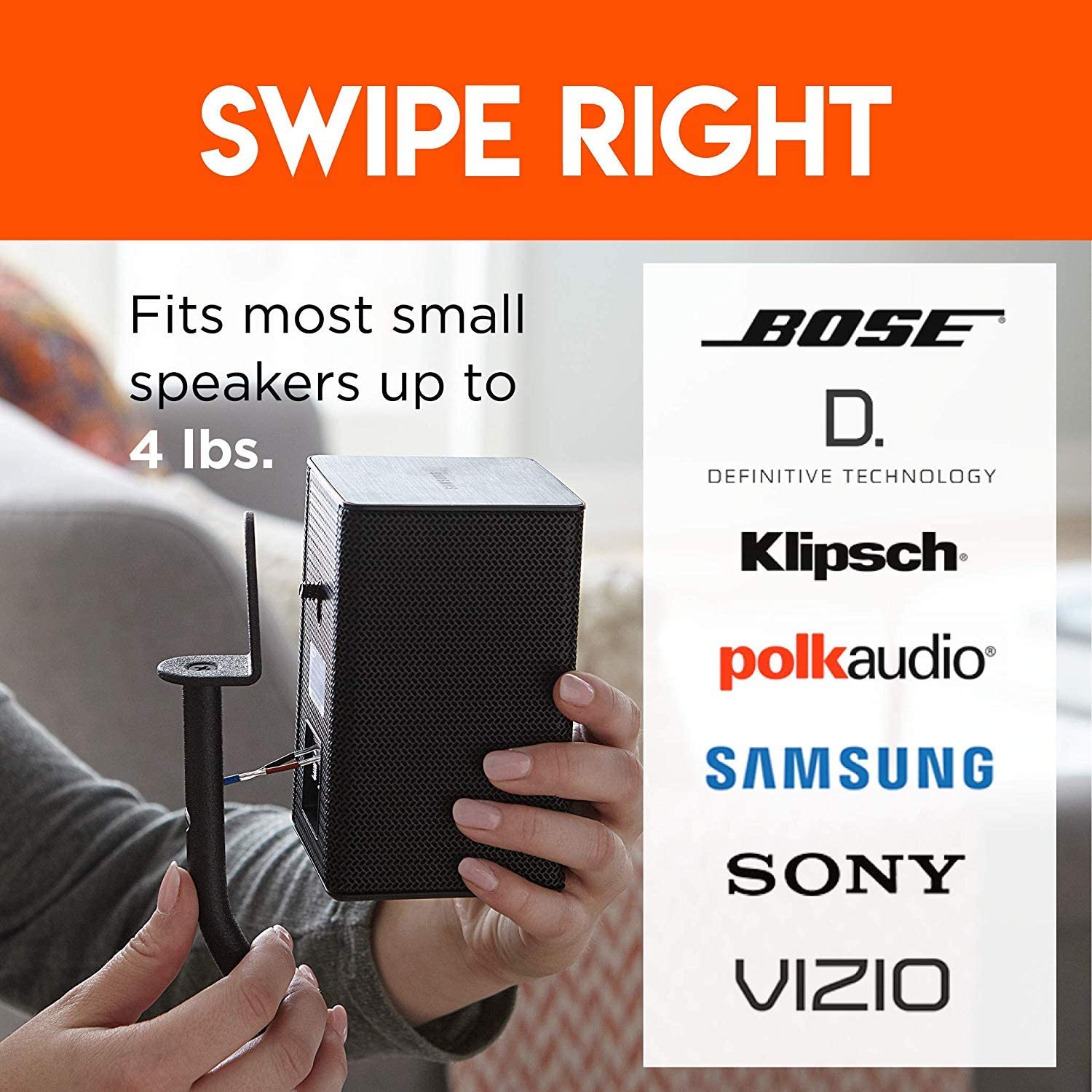 • Includes all the brackets & hardware needed to attach just about any small speaker up to 4 lbs. That includes Vizio, Sony, Bose, & more.