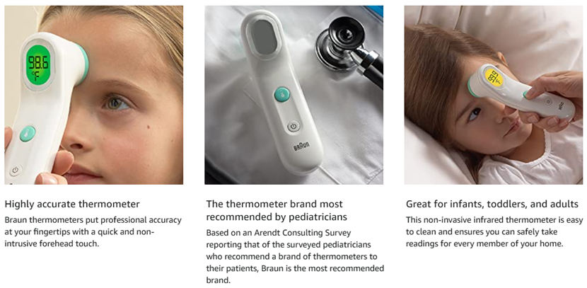 • A BRAND YOU CAN RELY ON – Pediatricians rely on Braun digital, forehead and no contact thermometers, and you can, too. Your family’s health is of the utmost importance, and we make thermometers you can trust