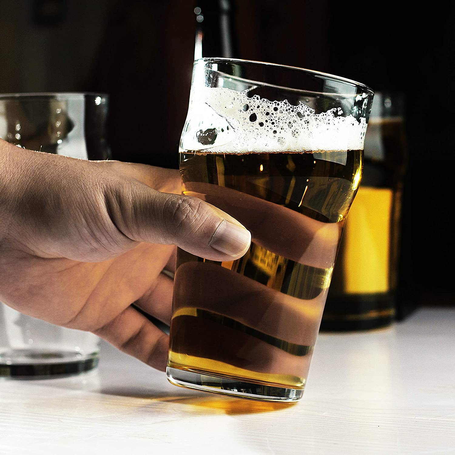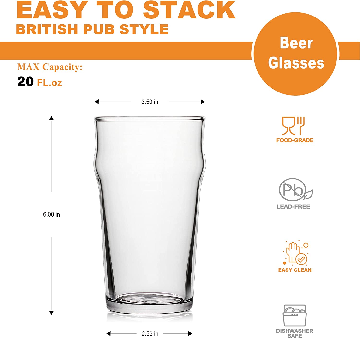 • Perfect Gift: Set of 4 20 OZ English pub pint glasses. Treat yourself and serve your guests with stylish beer glasses. Perfect for Birthdays, Weddings, Dad’s, Bachelor Parties and Christmas baskets.