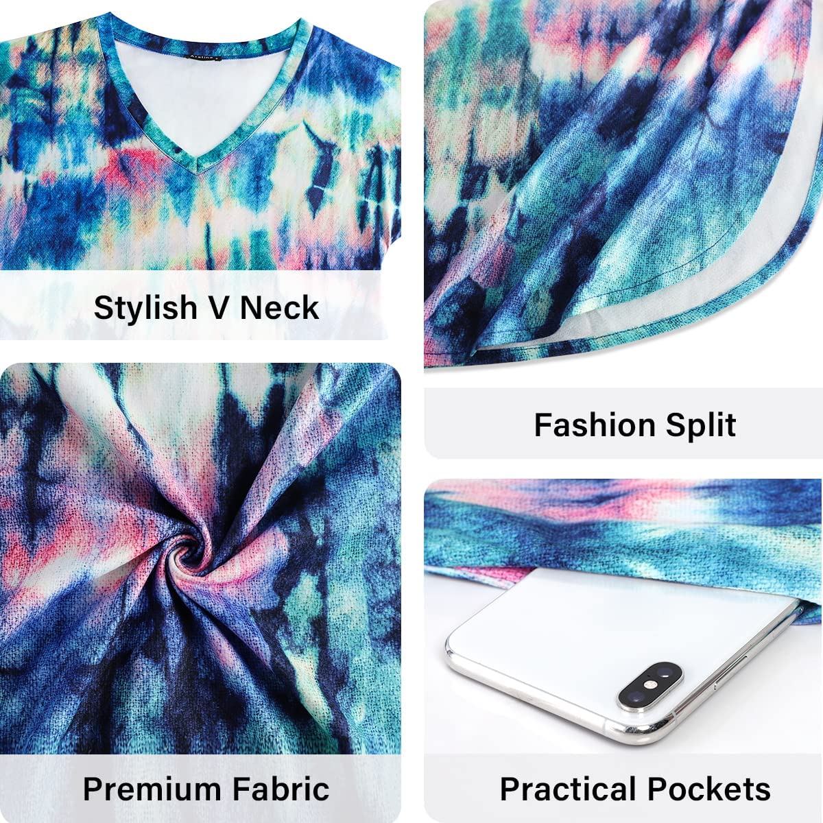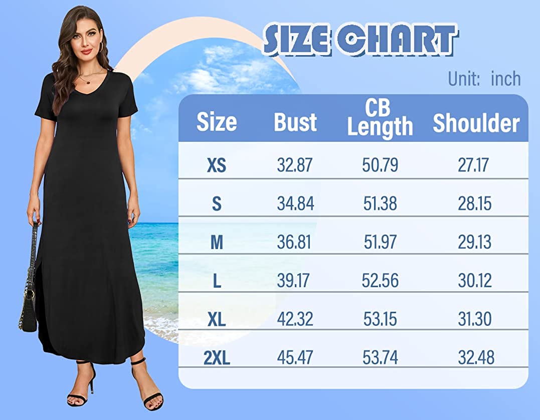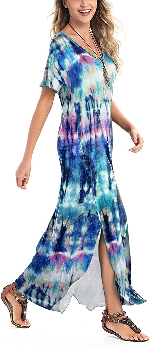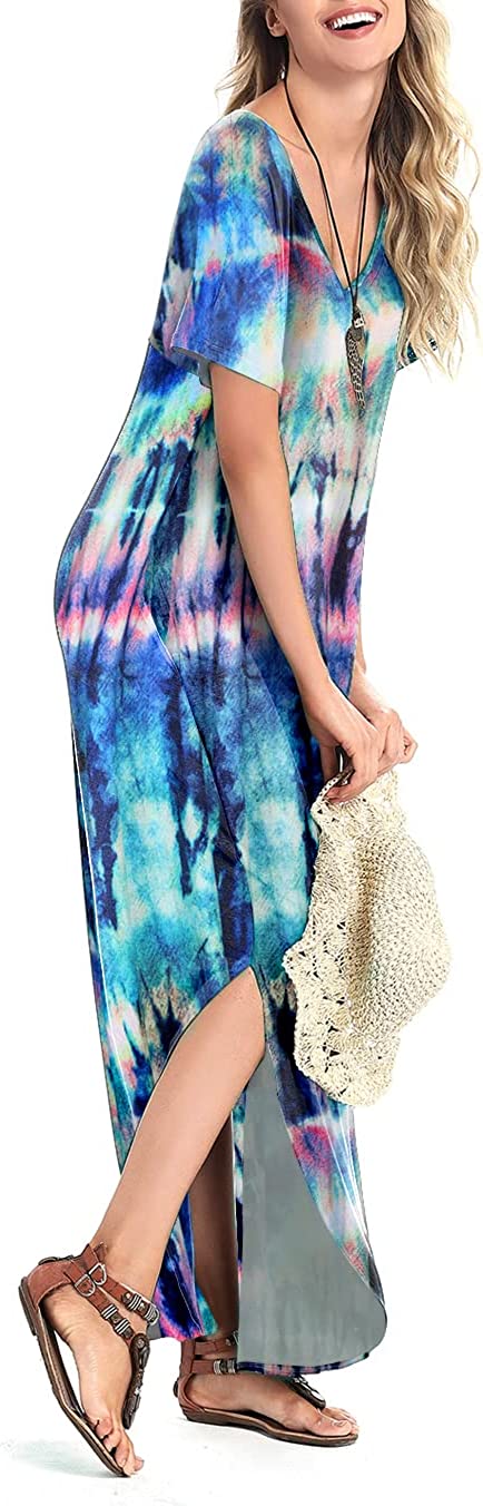 • Features: V neck short sleeves long dress for women, casual summer dresses with pockets, sexy side split, loose fit long bohemian hawaiian beach dress. Floral printed, solid color, tie dye. Flattering enough, flowy and swing, sexy and fashionable boho dress.