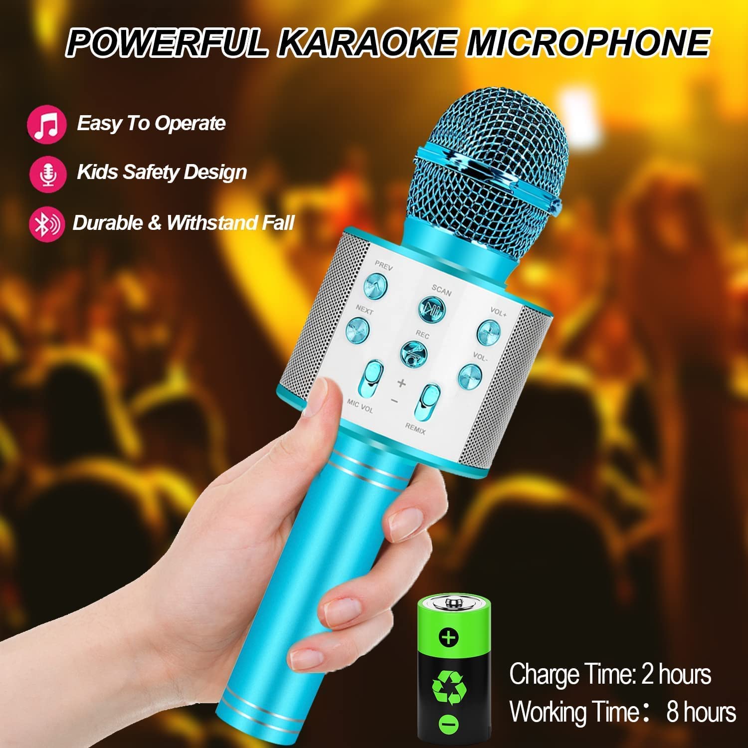 Niskite Karaoke Microphone for Kids Adults,Portable Bluetooth Microphone for Singing,Professional Voice Changer Blue Microphone Wireless,Birthday Gifts for 3 4 5 6 7 8 + Year Old Boys Girls Toys