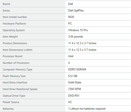 • Dell OptiPlex 9020-SFF, Intel Core i5-4570 3.2GHZ, 16GB RAM, 512GB SSD Solid State