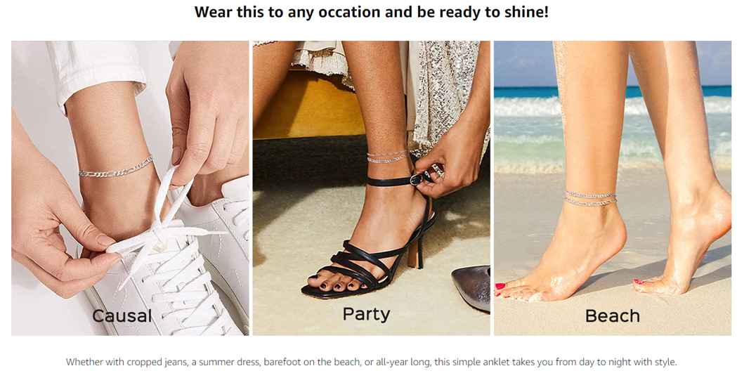 - ?【 UNIQUE DESIGN 】 This fashion dainty chain anklet for women or girl, is your perfect summer jewelry. Minimalist figaro anklet - Perfect for layering with more anklets, sparkles in the sun, perfect fit for your Ankle. This figaro link anklet bracelet will really bring you a lot of attention and praise!