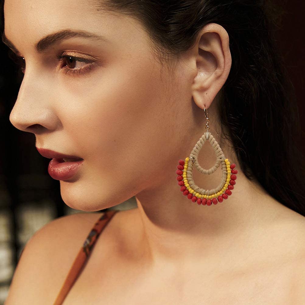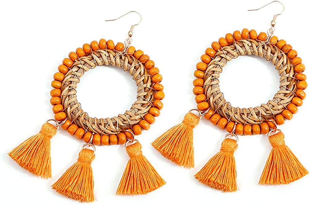 Bohemian Rattan Wooden Beads Fish Hook Circle/Teardrop Earrings Dangle Drop Jewelry for Women Girls