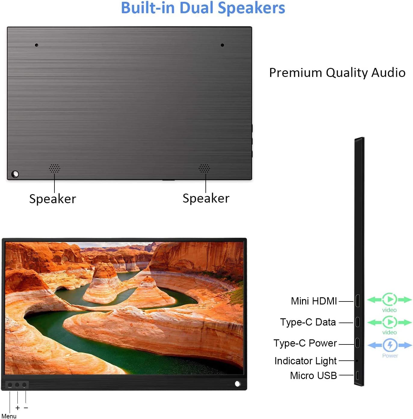 [Widely Application] Portable display with USB C, mini HDMI and USB port make it easy connection with Laptops, PCs, Phones, PS3/PS4, XBOX ONE or Switch and Mouse, Keyboard to play business presentations, games, videos, TV series, photos etc