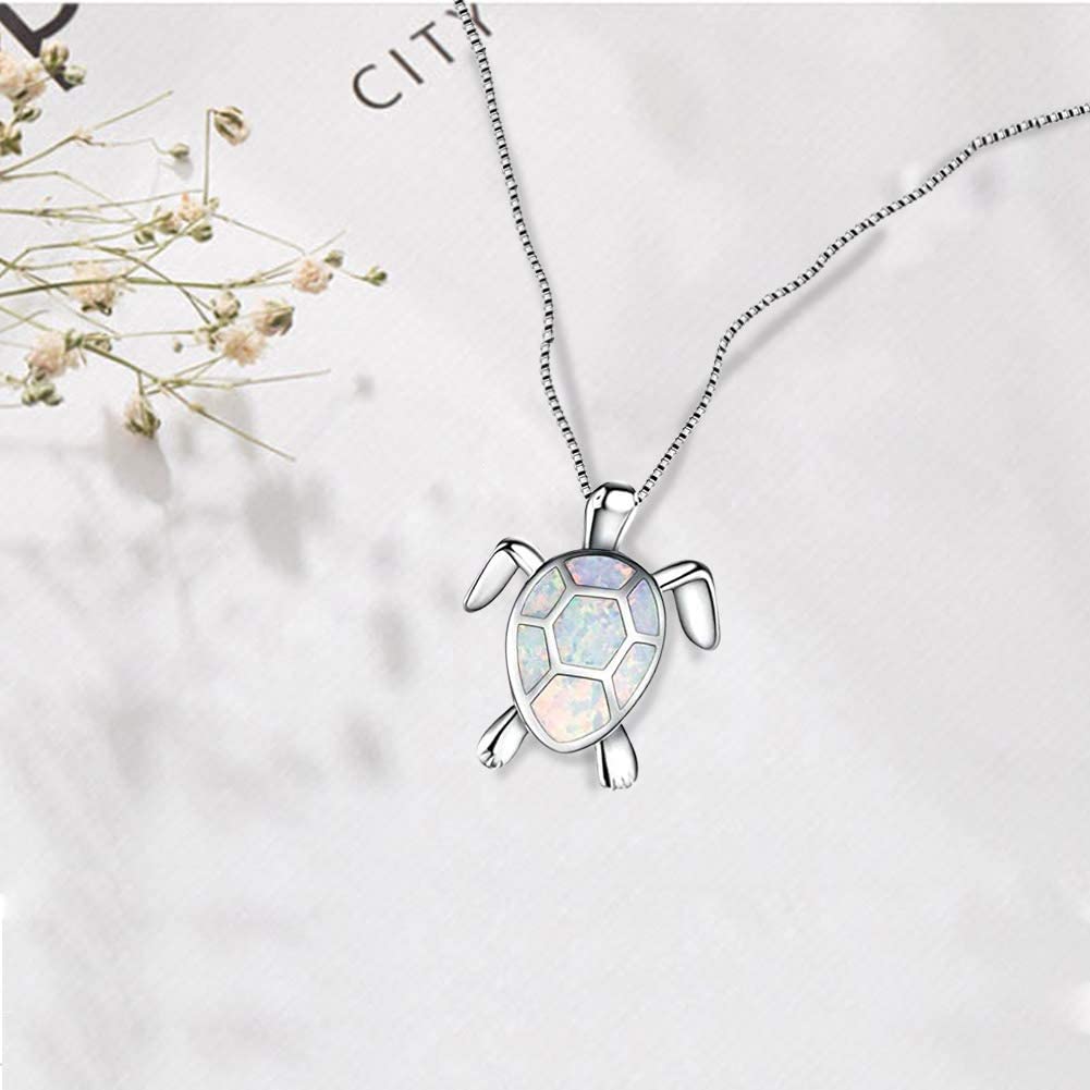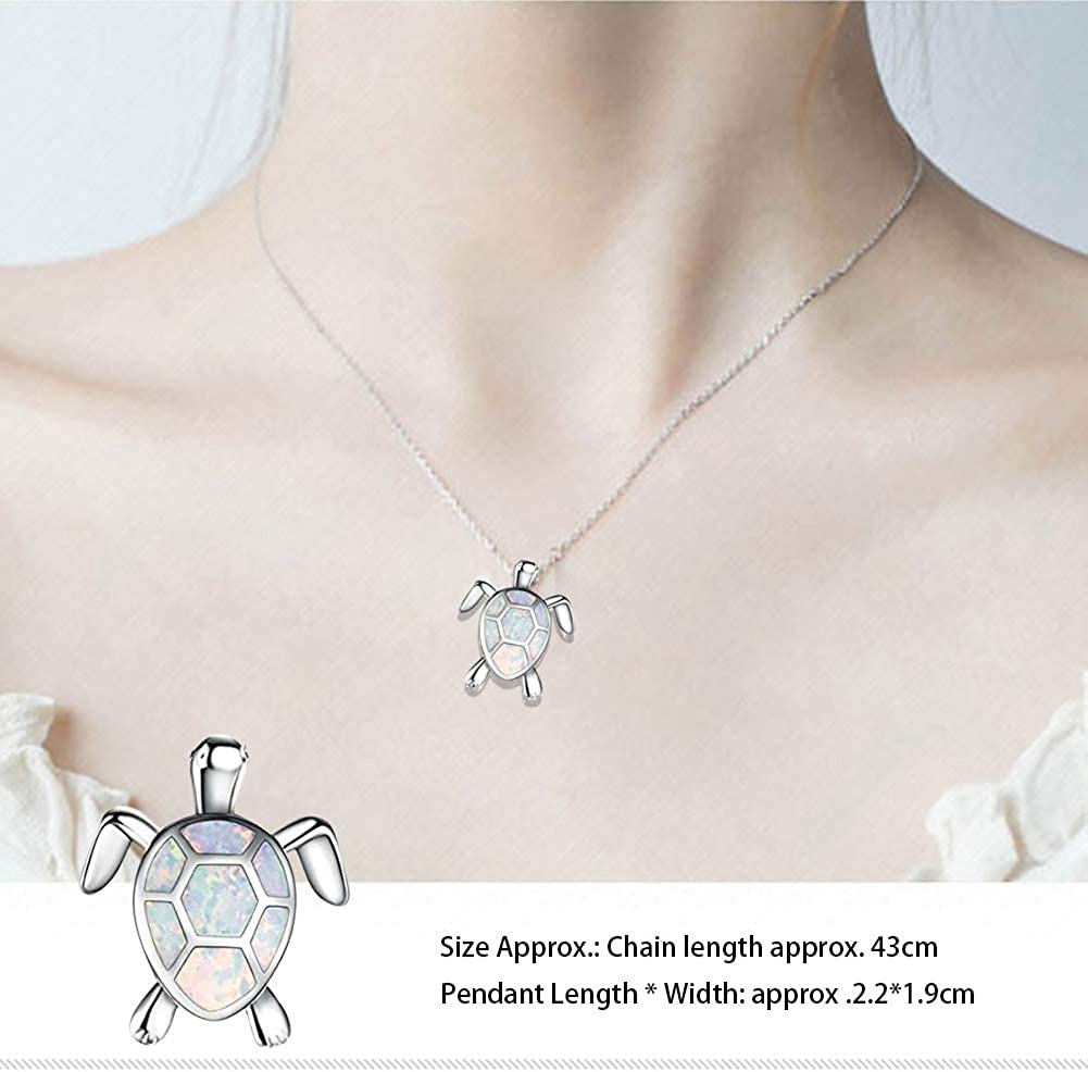 Hithop Cute Turtle Pendant Necklace Lovely Animals White Fire Opal Plated Silver Necklace Jewellery Gifts