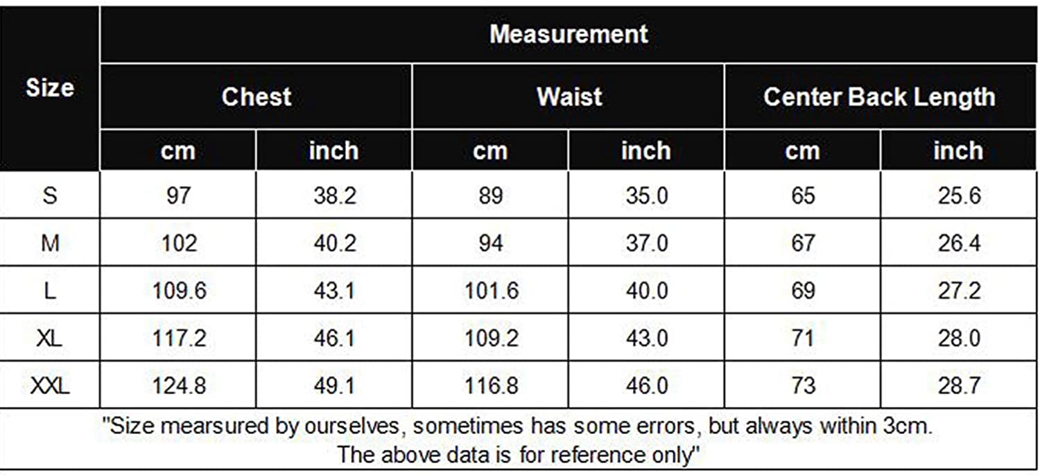 - Machine washable. NOTE--Please check our size chart carefully before purchase, if you want loose feeling or you have a big belly or wide chest, advise to choose one size bigger.