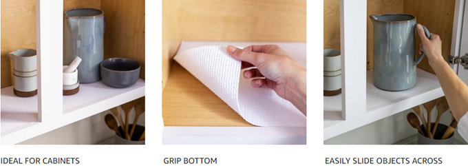 Ideal for: cabinets and shelves in kitchen, bath and laundry room
