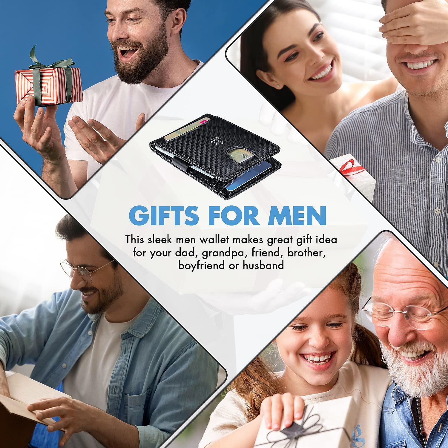 • EXCELLENT GIFT - This sleek minimalist wallet makes a great gift idea for your dad, grandpa, friend, brother, boyfriend or husband for birthdays, anniversaries, Christmas, Father’s Day, New Year’s and other occasions