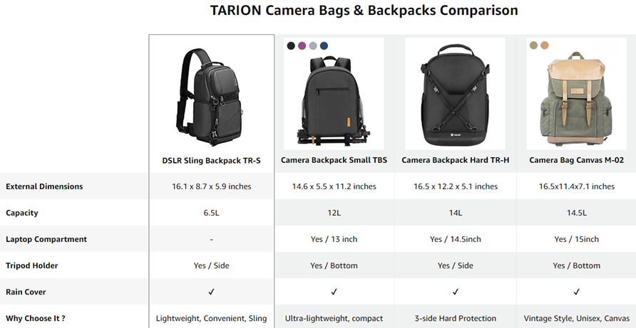 - 【Multi-Functional】 This camera backpack can be easily converted into a lightweight flexible simple straight city day-pack by removing the camera compartment dividers. Super easy to use for small day trips, there's enough room for personal gear. Obviously black is far more practical for everyday use. If you are not satisfied with our camera backpack or have any question, please feel free to contact us. TARION is always here.
