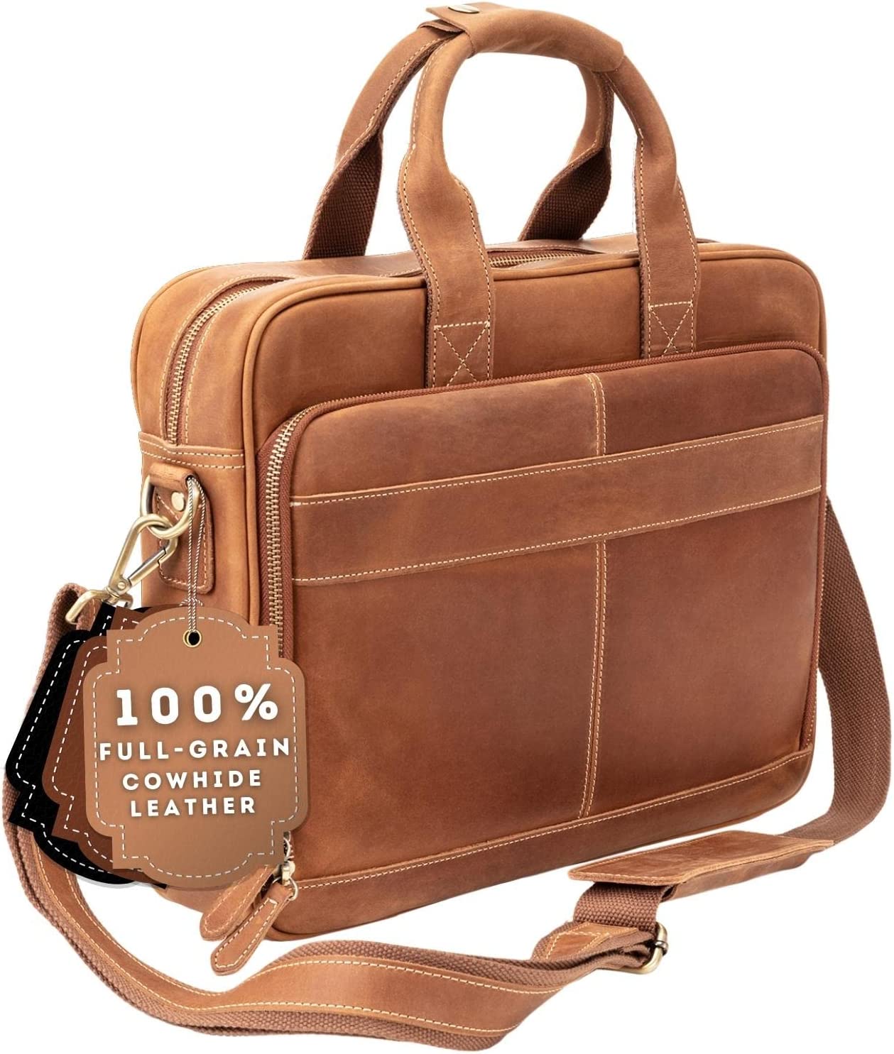 QUALITY CRAFTSMANSHIP - The executive leather briefcase for men is constructed with fine materials and expert craftsmanship. YKK zippers, solid antique brass hardware, precision stitching with heavy bonded thread, and a superb upgraded internal lining design. An office bag for men that will withstand many years of commuting.