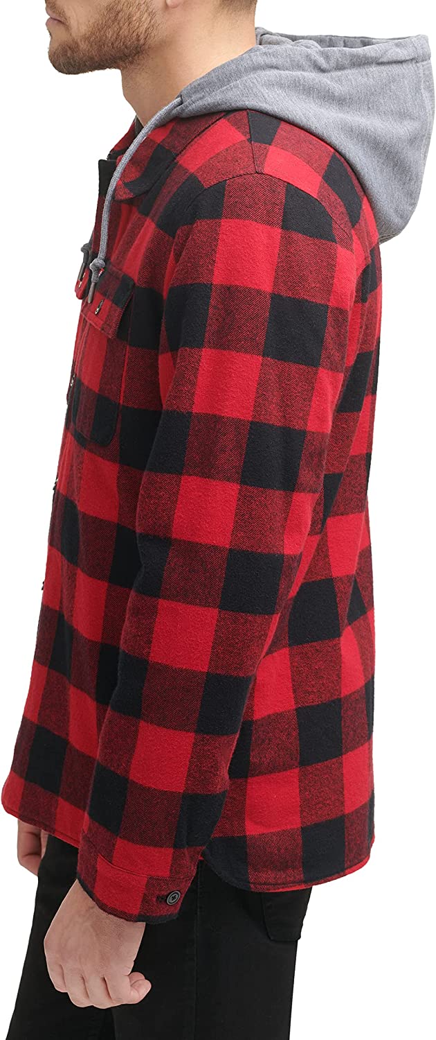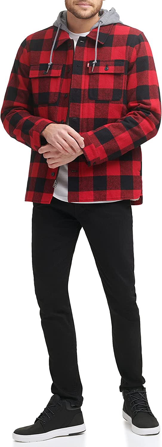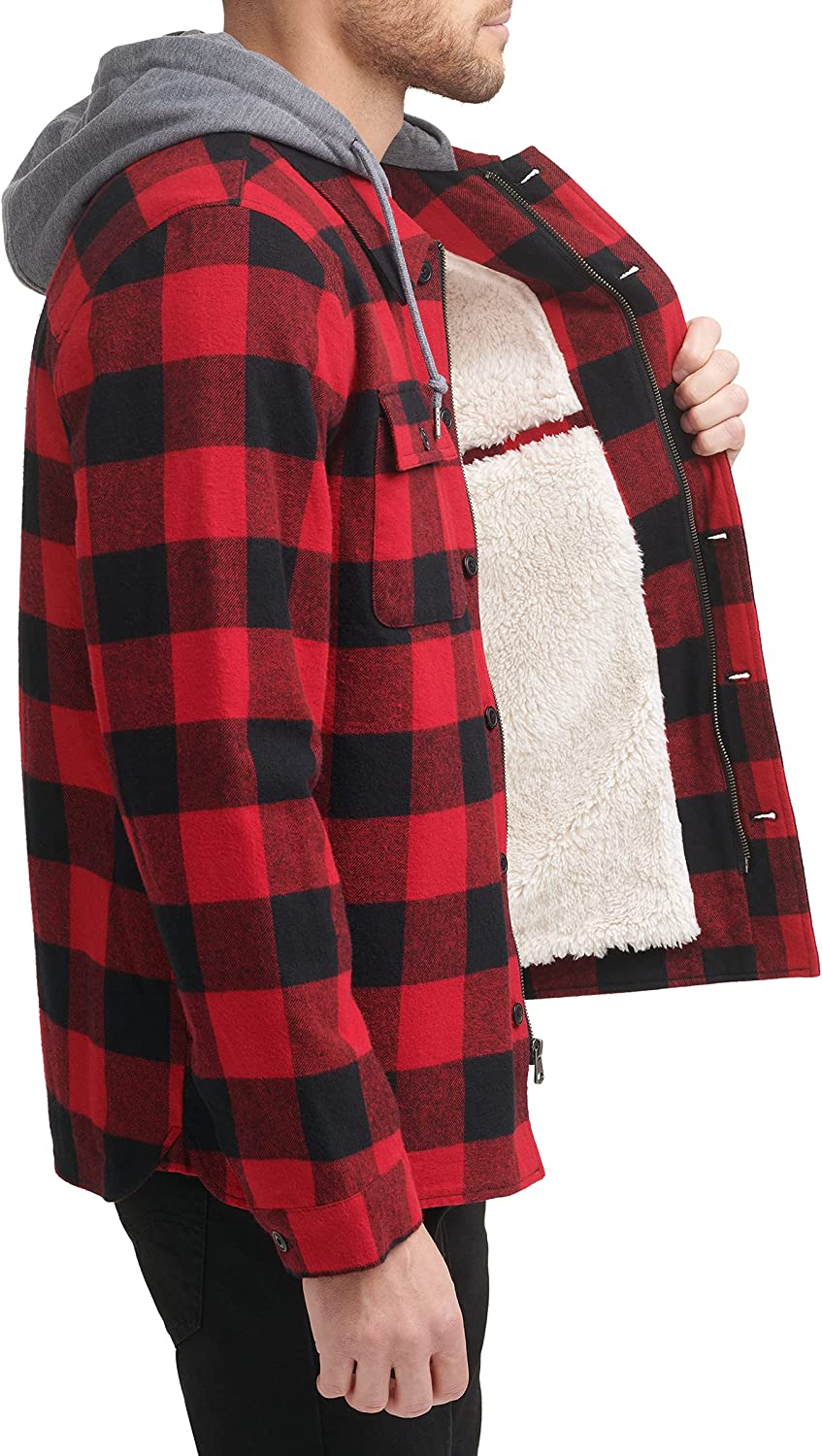 Levi's Men's Cotton Plaid Shirt Jacket with Soft Faux Fur Lining and Jersey Hood