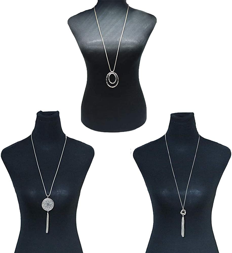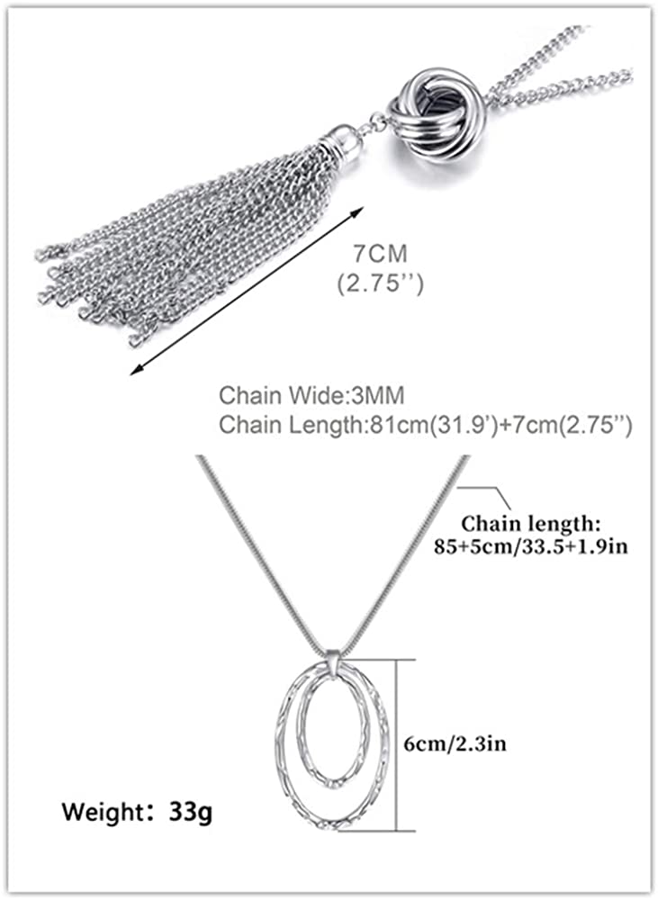 • ❤LONG NECKLACE SET❤ 3PCS tassel necklace one set,3 different popular styles,well match with your different outfit. 2.75”(7cm) long chic hanging curb tassels,nice show your beauty.
