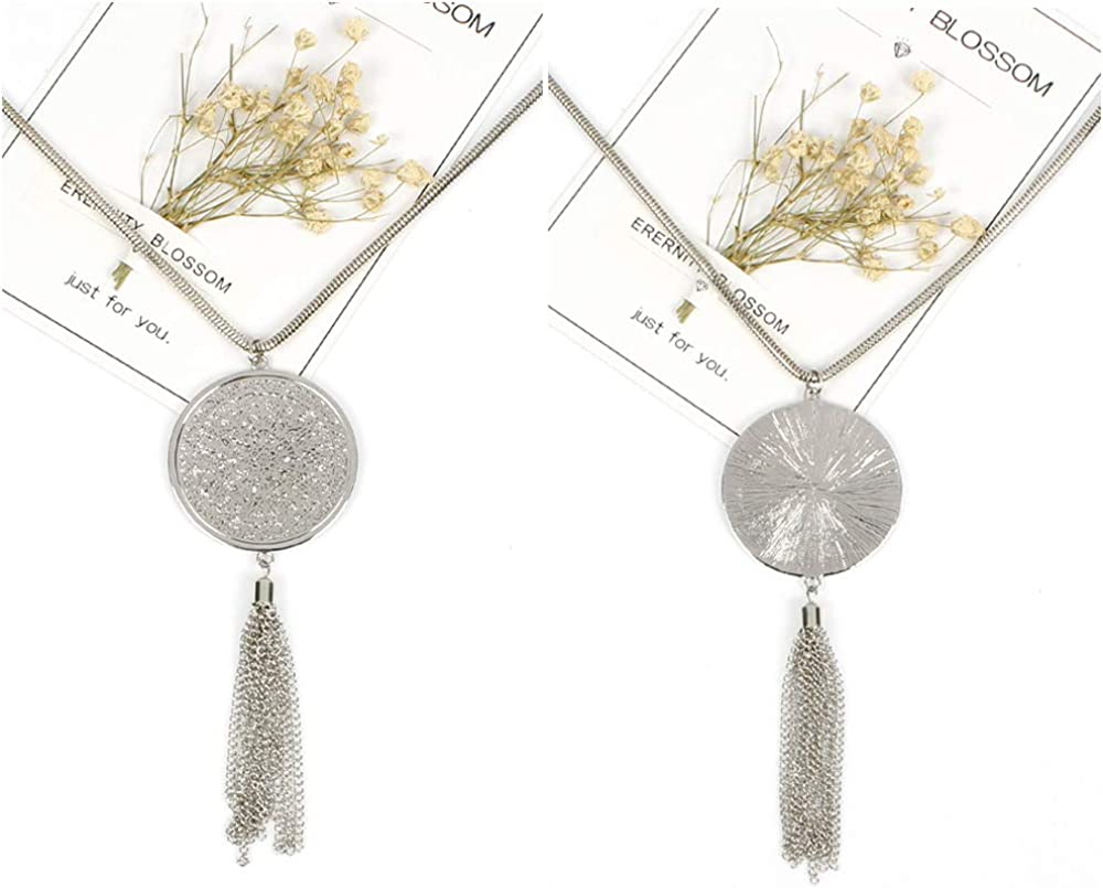 SEVENSTONE 3PCS Long Pendant Necklaces for Women Knot Disk Circle Tassel Statement Sweater Necklace Set
