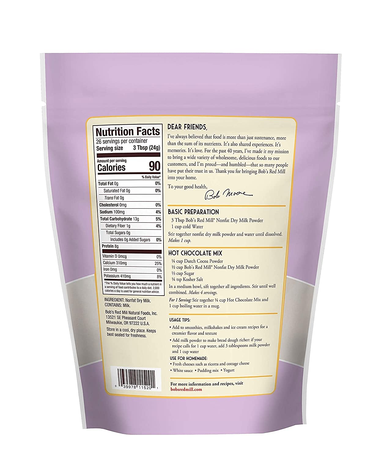 Bob's Red Mill Non Fat Dry Milk Powder, 22 Oz