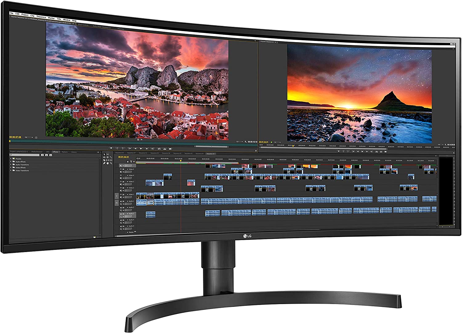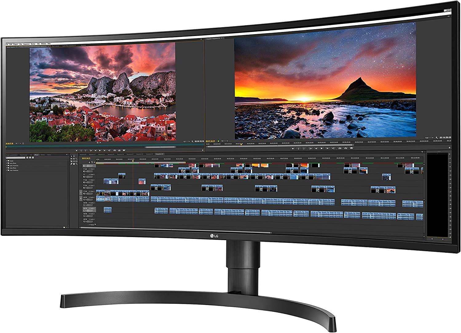 LG 34WN80C-B UltraWide Monitor 34” 21:9 Curved WQHD (3440 x 1440) IPS Display, USB Type-C (60W PD) , sRGB 99% Color Gamut, 3-Side Virtually Borderless Design, Tilt/Height Adjustable Stand - Black