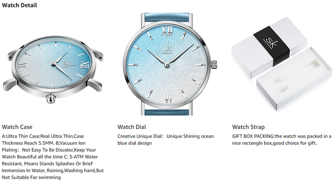 SHENGKE is the top brand in Aliexpress .SHENGKE watches design follow one rule:combine simple and fashion. all the SHENGKE watch have high quality: such as 3ATM water resistance, IP plating, Japan movement. so if you buy our watches, there is no need to worry about the quality.