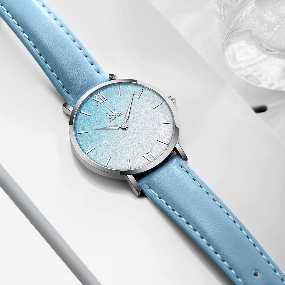 SHENGKE SK Ultra Thin Minialist Creative Starry Sky Women Watch with Genuine Leather Stainless Steel Mesh Band Floral Watch