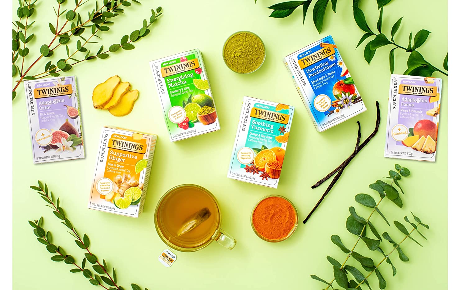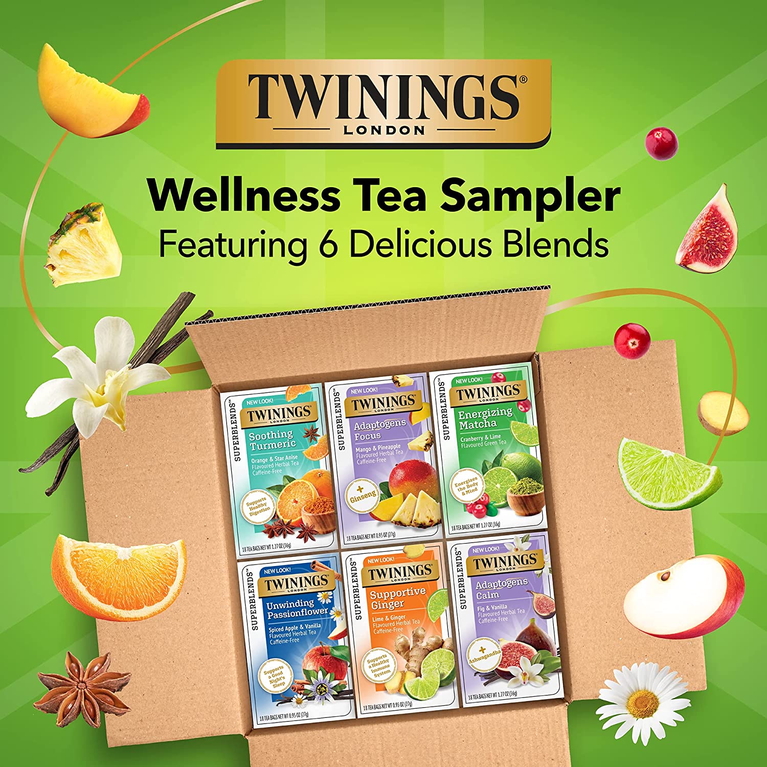 Twinings Daily Wellness Tea, Variety Pack, Flavored Herbal & Green Tea Bags, 18 Count (Pack of 6)