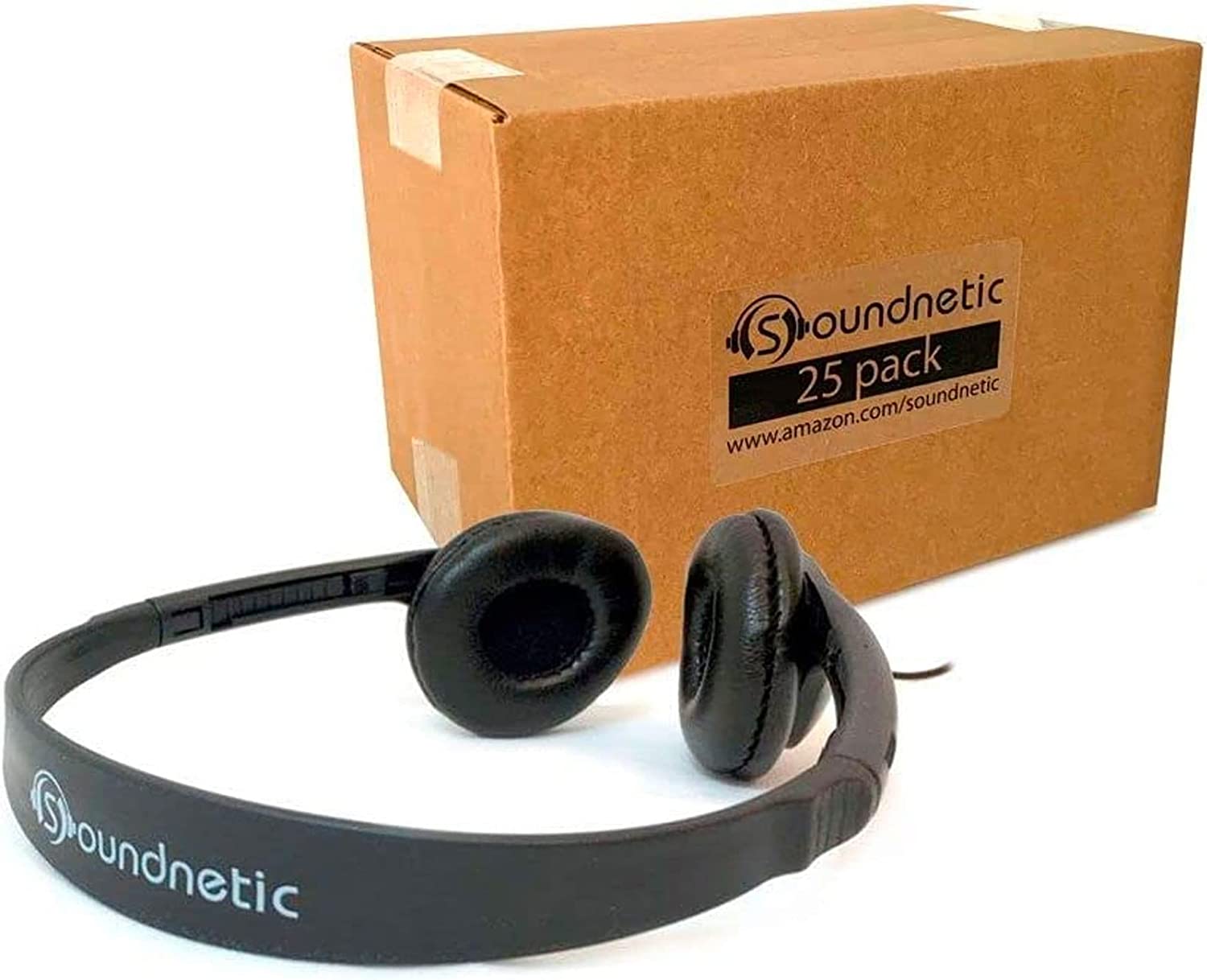 Soundnetic SN-313 25 Pack Classroom Over The Head Stereo Low Cost Headphones with Leatherette Earpads…