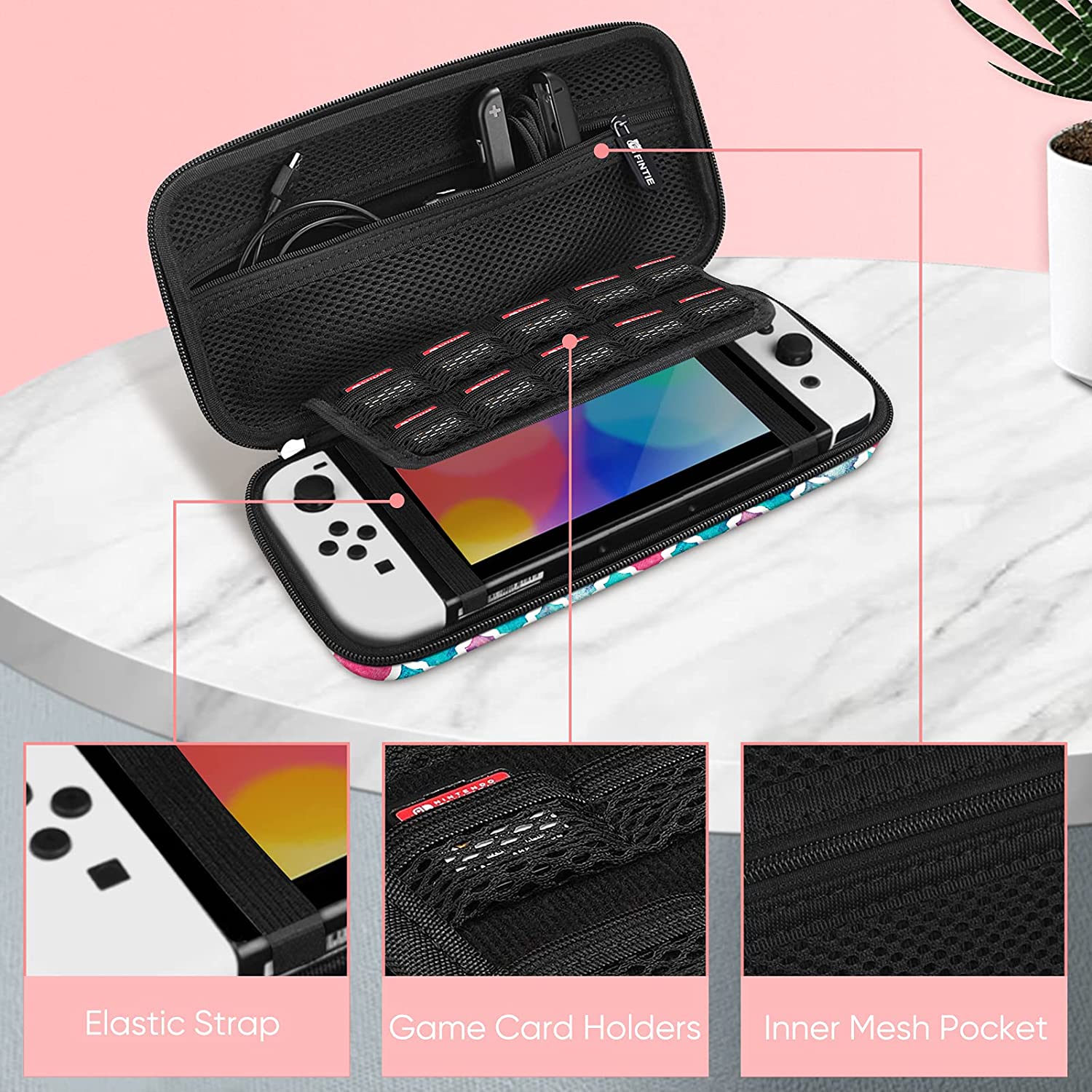 Fintie Portable Carrying Bag for Nintendo Switch - OLED Model (2021) 7.0 Inch / Nintendo Switch (2017) 6.2 Inch, keeps your device securely stored all the time.