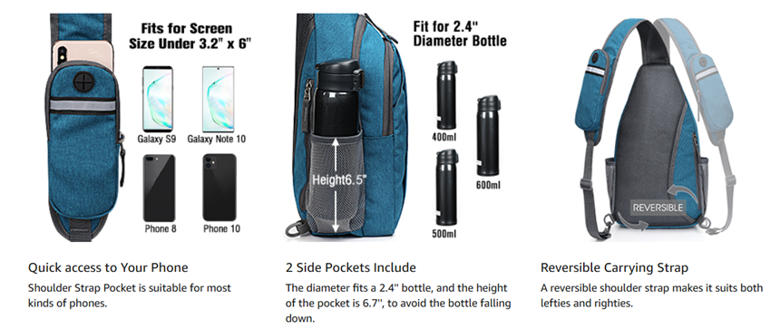 Water Repellent and Anti-friction: This sling bag is made of precision polyester with an SBS zipper, which is water-resistant, easy to clean, and anti-friction, effectively preventing it from tearing, wetting, and ripping. Has a certain waterproof performance, but can not be soaked totally in water for long period.